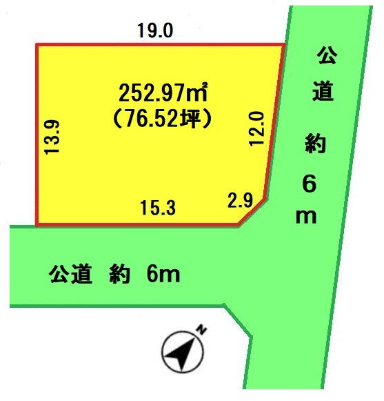 | 接道 | 北東 6m(幅員) 公道 15.086m(接面) 南東 6m(幅員) 公道 15.374m(接面) |