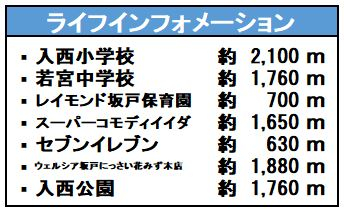 | 学区 | 小学校区:入西小学校 2,100m 中学校区:若宮中学校 1,760m |