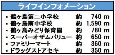 | 学区 | 小学校区:鶴ヶ島第二小学校 740m 中学校区:鶴ヶ島南中学校 1,590m |