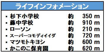 | 学区 | 小学校区:杉下小学校 350m 中学校区:藤中学校 910m |