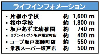 | 学区 | 小学校区:片柳小学校 1,600m 中学校区:桜中学校 1,800m |