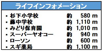 | 学区 | 小学校区:杉下小学校 580m 中学校区:藤中学校 1,110m |