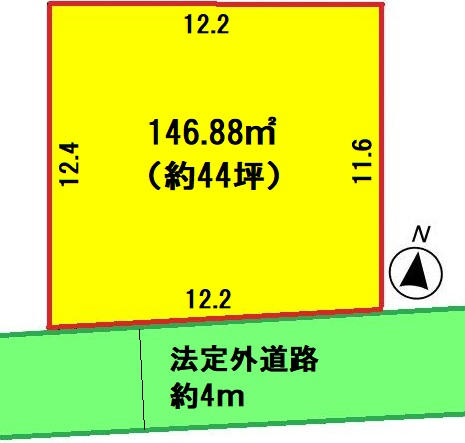 | 接道 | 南 4m(幅員) 法定外道路 12.2m(接面) |