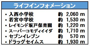 | 学区 | 小学校区:入西小学校 2,060m 中学校区:若宮中学校 1,530m |