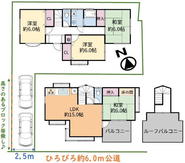 | 接道 | 南 6m(幅員) 公道 2.5m(接面) |
