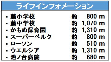 | 学区 | 小学校区:藤小学校 800m 中学校区:藤中学校 1,070m |
