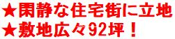 閑静な住宅街に立地!敷地広々92坪!建築条件無しのため、お好きなハウスメーカーで建築できます!