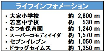 | 学区 | 小学校区:大家小学校 2,800m 中学校区:若宮中学校 530m |
