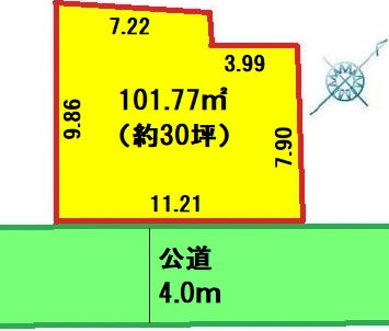 | 接道 | 南東 4m(幅員) 公道 11.21m(接面) |