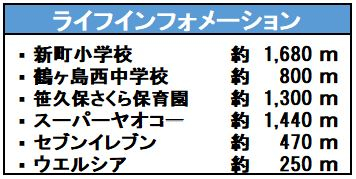 | 学区 | 小学校区:新町小学校 1,680m 中学校区:鶴ヶ島西中学校 800m |
