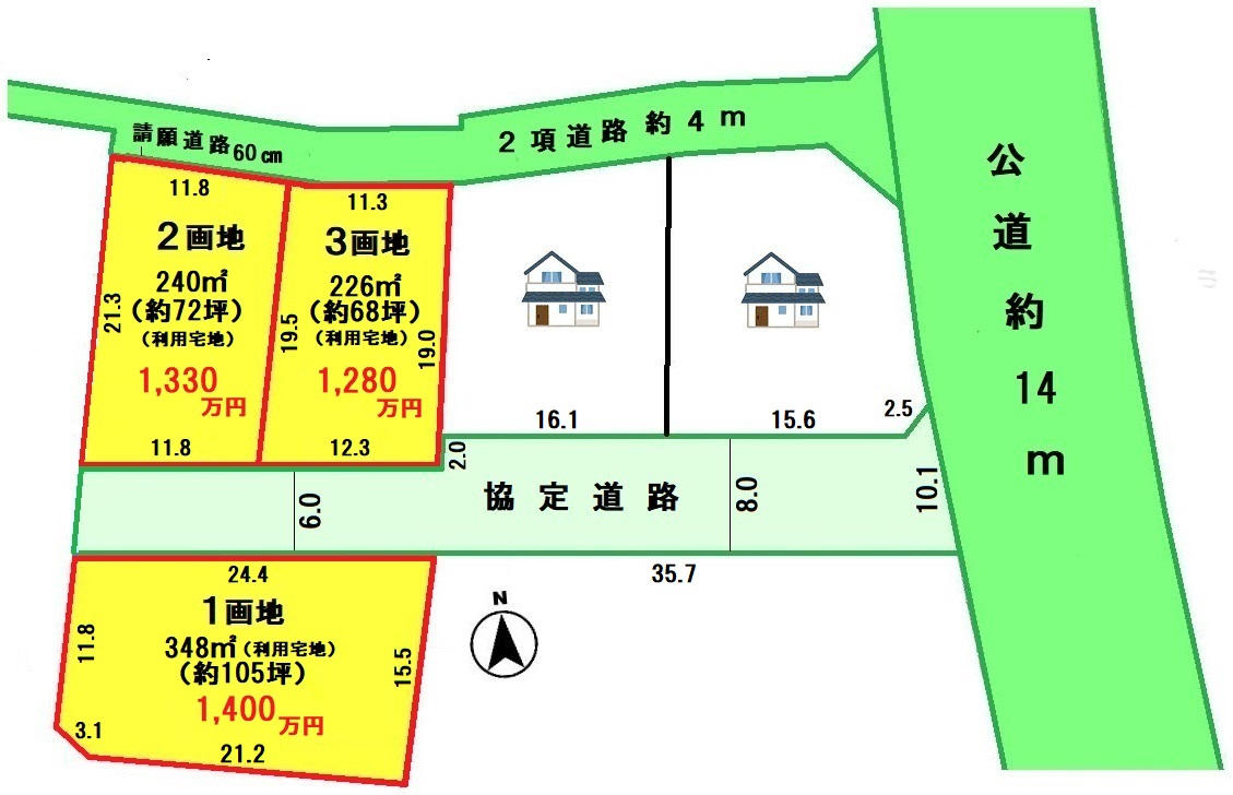 | 接道 | 東 14m(幅員) 公道 2m(接面) |