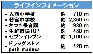 | 学区 | 小学校区:入西小学校 710m 中学校区:若宮中学校 2,360m |