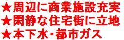 周辺に商業施設充実、生活に便利!閑静な住宅街に立地!本下水・都市ガス!