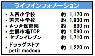 | 学区 | 小学校区:入西小学校 1,170m 中学校区:若宮中学校 1,930m |