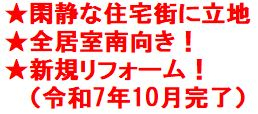 閑静な住宅街に立地!全居室南向き!新規リフォーム(令和7年10月完了)
