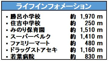| 学区 | 小学校区:勝呂小学校 1,970m 中学校区:住吉中学校 250m |