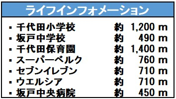| 学区 | 小学校区:千代田小学校 1,200m 中学校区:坂戸中学校 490m |