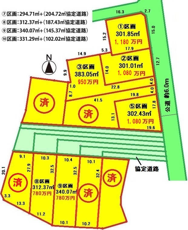建築条件なし、調整34条11号(何方でも可)、公営水道(敷地内引込予定)、浄化槽、プロパンガス、電気、農地転用・開発許可売主負担、造成後引渡し、試掘済(本掘不要)、水害ハザードマップ:該当なし、ナビ:成願寺361-1