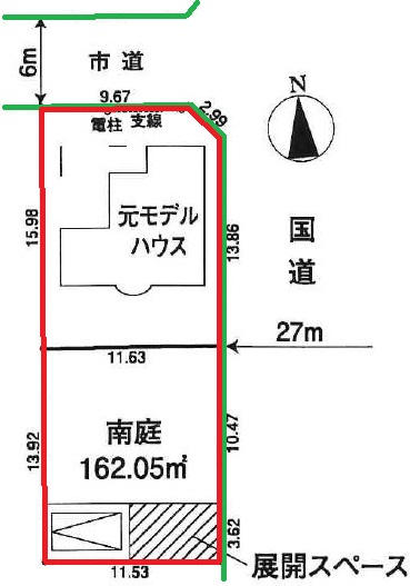 | 接道 | 北 6m(幅員) 公道 9.67m(接面) 東 27m(幅員) 公道 27.95m(接面) |
