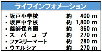 | 学区 | 小学校区:坂戸小学校 400m 中学校区:坂戸中学校 1,800m |