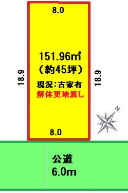 | 接道 | 南東 6m(幅員) 公道 8m(接面) |