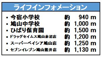 | 学区 | 小学校区:今宿小学校 940m 中学校区:鳩山中学校 1,000m |