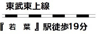 | 交通 | 東武東上線 若葉駅まで 徒歩19分 東武東上線 鶴ヶ島駅まで 徒歩25分 |