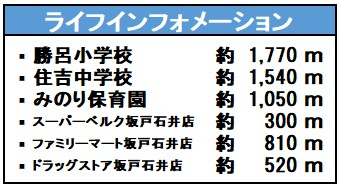| 学区 | 小学校区:勝呂小学校 1,770m 中学校区:住吉中学校 1,540m |