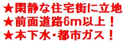 閑静な住宅街に立地!本下水・都市ガス!前面道路6m以上!