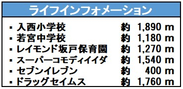 | 学区 | 小学校区:入西小学校 1,890m 中学校区:若宮中学校 1,180m |