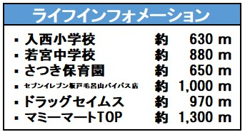 | 学区 | 小学校区:入西小学校 1,050m 中学校区:若宮中学校 970m |