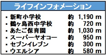 | 学区 | 小学校区:新町小学校 1,190m 中学校区:鶴ヶ島西中学校 720m |