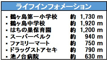 | 学区 | 小学校区:鶴ヶ島第一小学校 1,730m 中学校区:鶴ヶ島中学校 1,920m |
