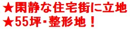 閑静な住宅街に立地!55坪・整形地!建築条件無しのため、お好きなハウスメーカーで建築できます!