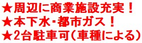 東武東上線 北坂戸駅徒歩7分!周辺に商業施設充実、生活に便利!本下水・都市ガス!2台駐車可(車種による)