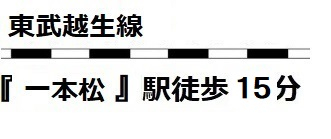 | 交通 | 東武越生線 一本松駅まで 徒歩15分 東武東上線 坂戸駅まで 徒歩33分 |