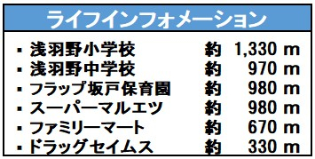 | 学区 | 小学校区:浅羽野小学校 1,330m 中学校区:浅羽野中学校 970m |