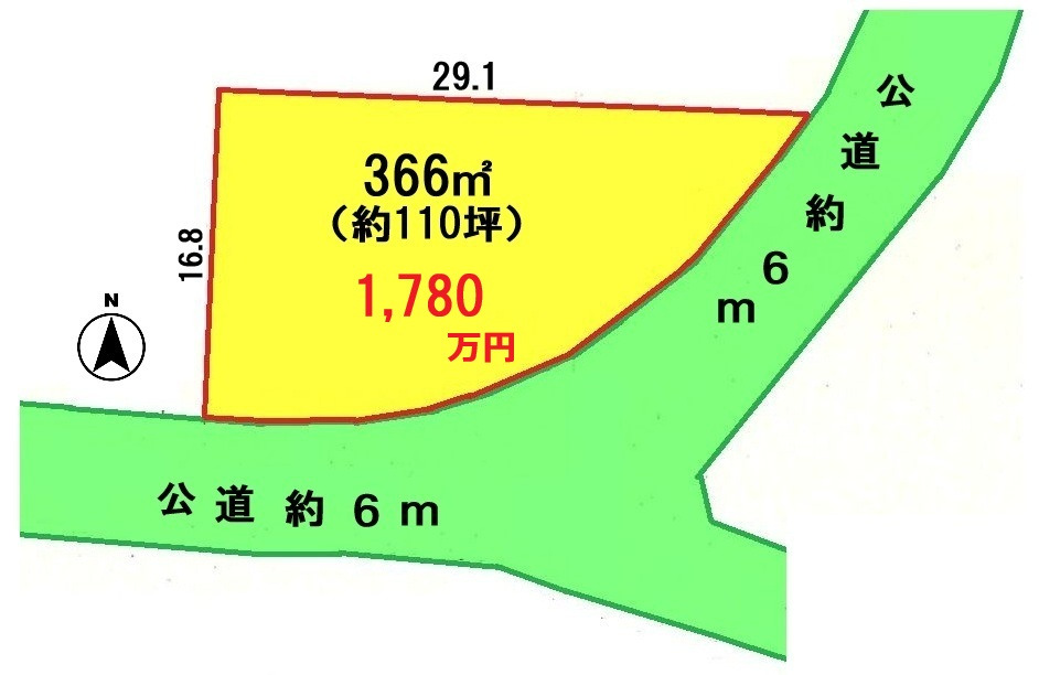 | 接道 | 東 6m(幅員) 公道 南 6m(幅員) 公道 |