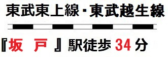 | 交通 | 東武東上線 北坂戸駅まで バス18分 停歩7分 東武東上線 坂戸駅まで 徒歩34分 |