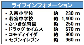 | 学区 | 小学校区:入西小学校 230m 中学校区:若宮中学校 1,400m |