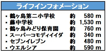 | 学区 | 小学校区:鶴ヶ島第二小学校 580m 中学校区:藤中学校 1,530m |