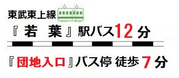 | 交通 | 東武東上線 鶴ヶ島駅まで 徒歩30分 東武東上線 若葉駅まで バス12分 停歩7分 |