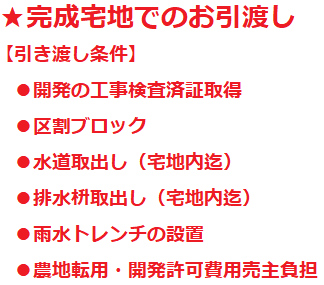 建築条件なし、調整34条11号(何方でも可)、公営水道、都市ガス、農地転用・開発許可が必要です、完成宅地でのお引渡し、水害ハザードマップ:該当なし、文化財包蔵地、がけ条例、引渡しに条件あり(擁壁工事の為)、ナビ:中小坂721-1付近