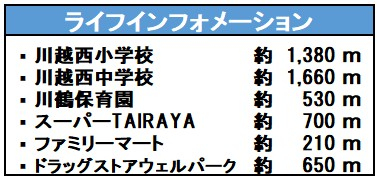 | 学区 | 小学校区:川越西小学校 1,380m 中学校区:川越西中学校 1,660m |