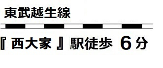 | 交通 | 東武越生線 西大家駅まで 徒歩6分 東武越生線 一本松駅まで 徒歩29分 |