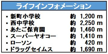 | 学区 | 小学校区:新町小学校 1,200m 中学校区:鶴ヶ島西中学校 2,250m |