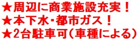 周辺に商業施設充実、生活に便利!本下水・都市ガス!2台駐車可(車種による)