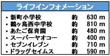 | 学区 | 小学校区:新町小学校 630m 中学校区:鶴ヶ島西中学校 810m |