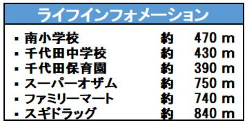 | 学区 | 小学校区:坂戸南小学校 470m 中学校区:千代田中学校 430m |