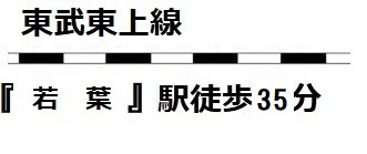 | 交通 | 東武東上線 若葉駅まで 徒歩35分 東武東上線 若葉駅まで バス10分 停歩10分 |